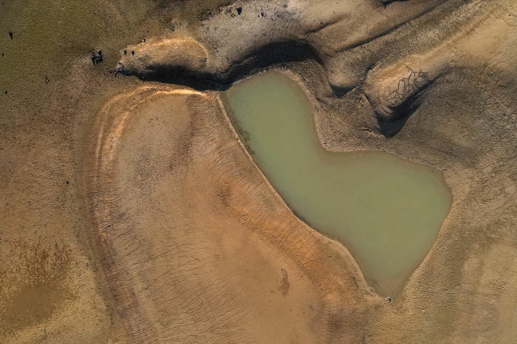 当地时间2022年2月15日,西班牙马拉加70公里的石泉湖近乎干涸。官员声称西班牙水储备目前不足其容量的45%,