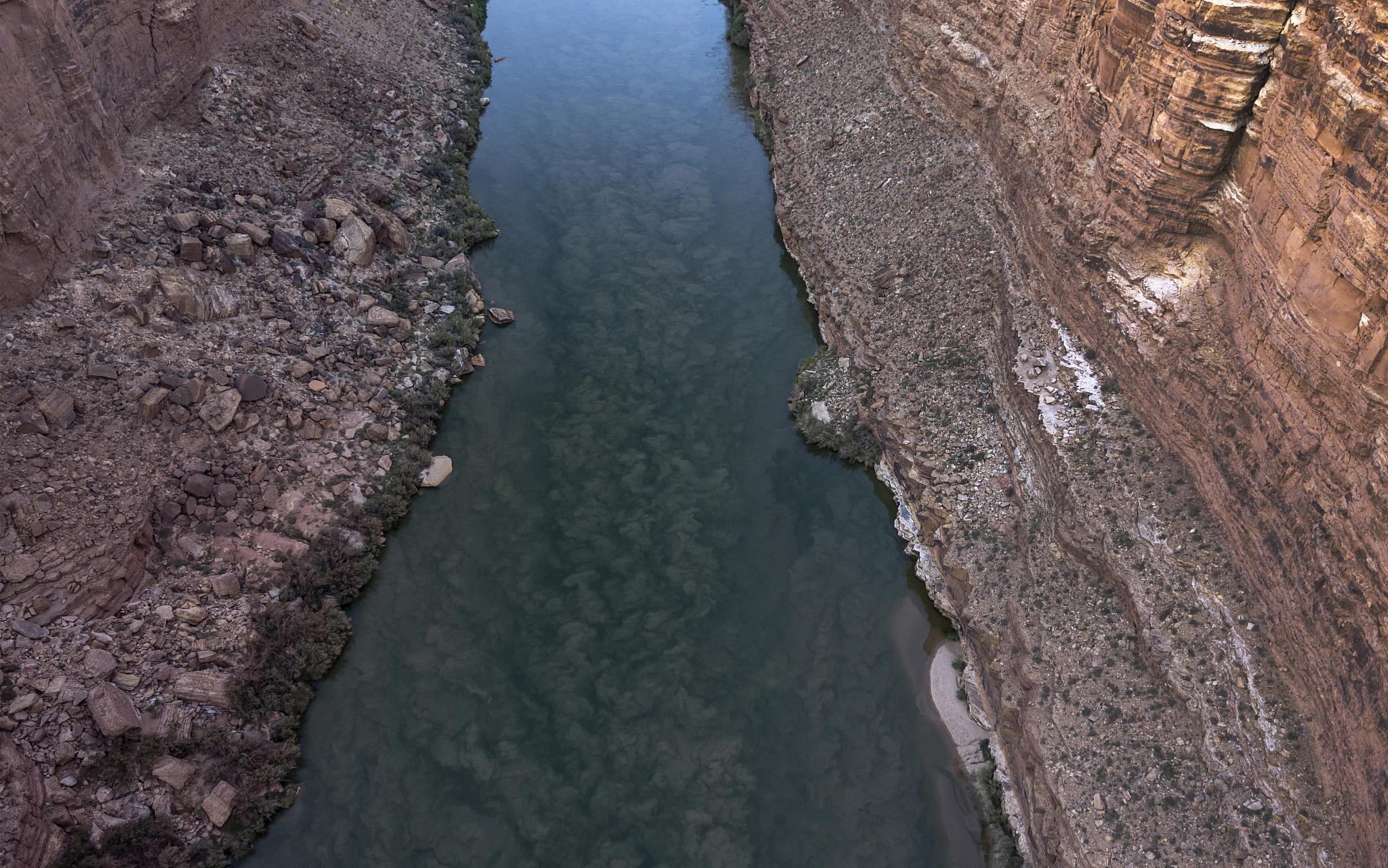 当地时间2022年8月31日,美国亚利桑那州,鲍威尔湖下游的科罗拉多河通过大理石峡谷时,沉积物被搅动。
