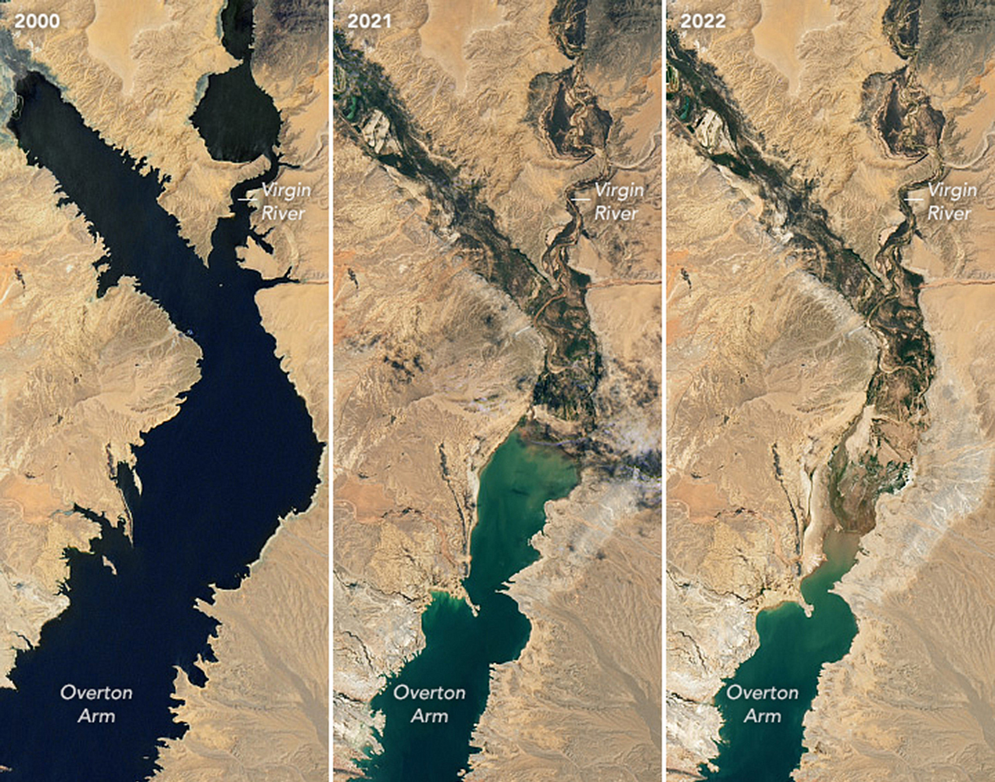 2000年-2022年卫星拍摄的美国米德湖变化。