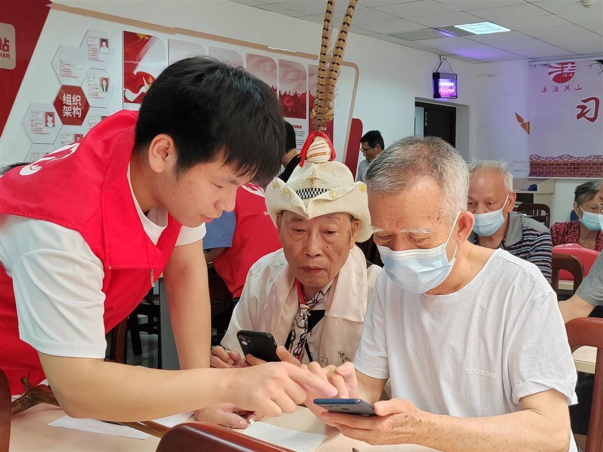 “我的移动数据功能开了吗?”“这个字体怎么放大呀?”“为什么我的相机打不开?”5月21日,武汉市洪山区狮子山街712所社区2楼合唱室中不时传来老人们的阵阵疑问。在这间容纳了23位老人的房间里,湖北工业大学经济与管理学院的7名学生志愿者们穿梭于老人们身旁,开展“智享生活,情暖夕阳”主题活动,耐心细致地为他们解答智能手机使用过程中的问题。