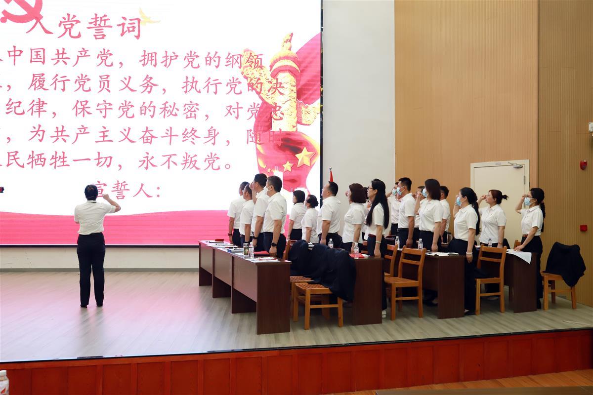 9时10分,“岗位建功,先锋有我”支部主题党日观摩践行活动正式启动。常福中学支委委员、副校长袁劲梅同志带领全体党员重温入党誓词,集体诵读《中国共产党章程》中部分修订内容。
