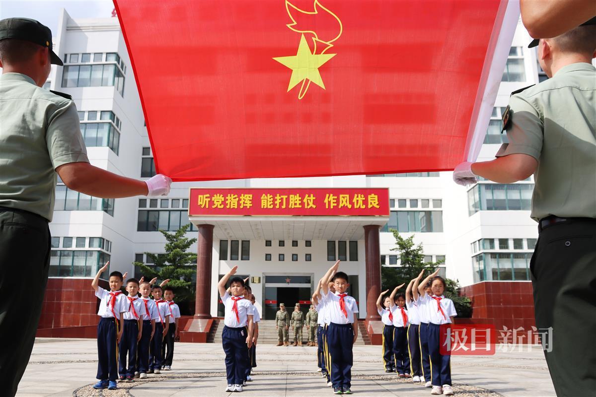 在办公楼前,升旗仪式和少先队员宣誓仪式是官兵送给孩子的特殊礼物,孩子们也将鲜艳的红领巾献给了最可爱的解放军叔叔们,解放军给参加活动的小学生赠送“六一”儿童节礼物。活动最后,孩子们来到英模广场聆听红色故事。区实验小学古驿路校区政教处主任李小雅说:这次“六一”进军营活动,让孩子们“零距离”地接触到部队军旅生活,在军营体验活动中汲取了养分、增长了见识、开阔了眼界,为培养青少年爱党爱国情怀,加强革命传统和理想信念教育奠定了基础。