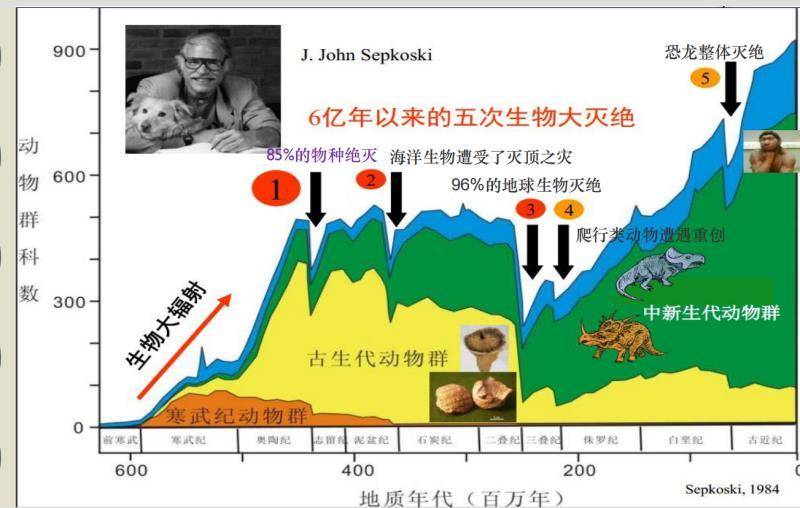 从进化论的角度来看,物种灭绝本是自然规律,从寒武纪时期生物大辐射至今,6亿年以来,地球经历了五次生物大灭绝,第一次,85%的物种绝灭;第二次,海洋生物遭受了灭顶之灾;第三次,96%的地球生物灭绝;第四次,爬行类动物遭遇重创;第五次,恐龙整体灭绝。但每一次生命经历生物多样性波谷后,地球都会迎来更加蓬勃的生物多样性高峰,在一轮又一轮的湮灭新生中,地球上的生物种类越来越多。
