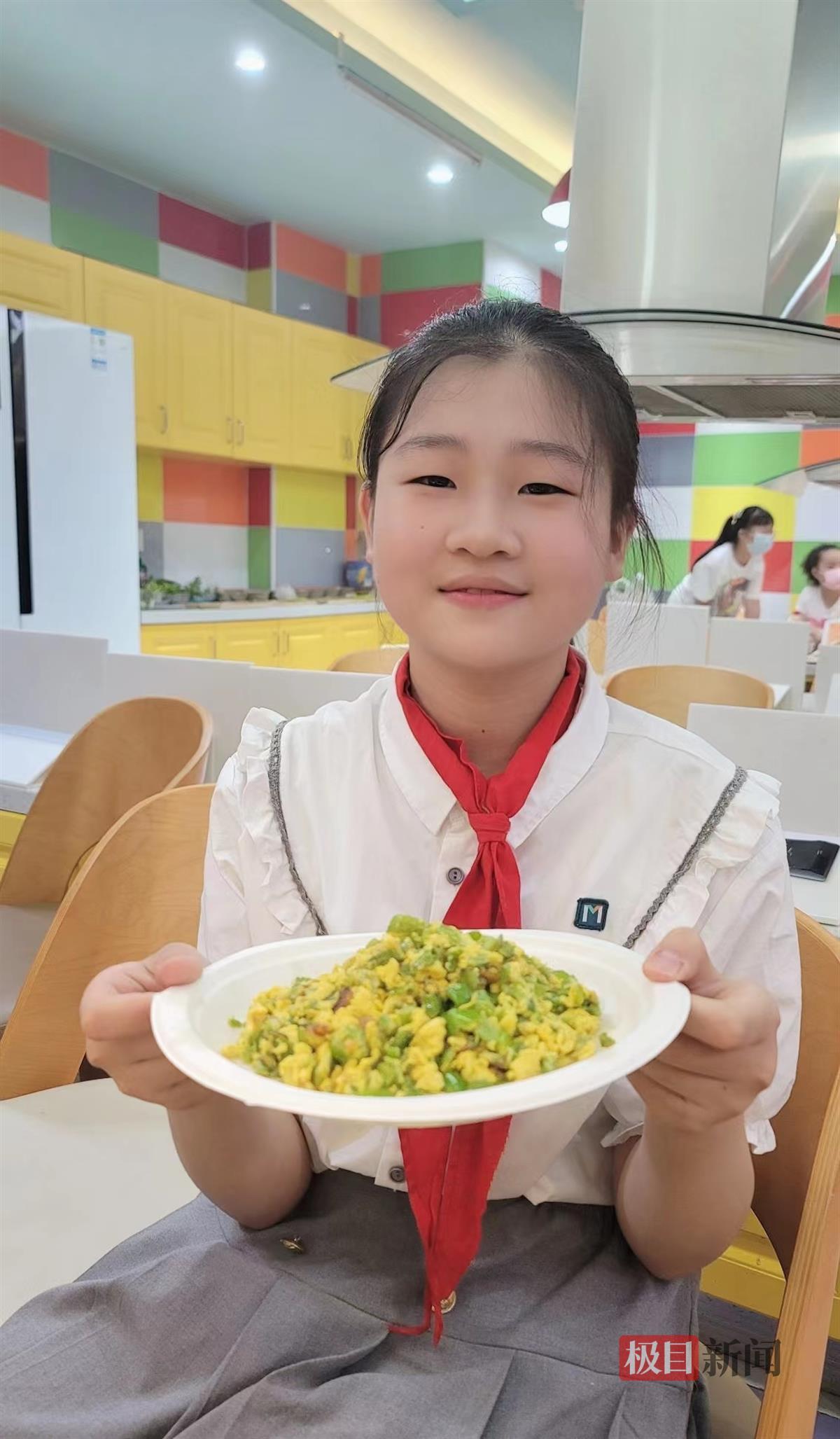 凉拌毛豆,糖醋里脊、凉拌秋葵、酸辣土豆丝、可乐鸡翅、鱼香肉丝……美食云集,香味四溢。整栋教学楼里飘散着美食的香味,孩子们品尝自己的劳动果实,不但学到了新技能,还享受了劳动实践带来的快乐和满足。