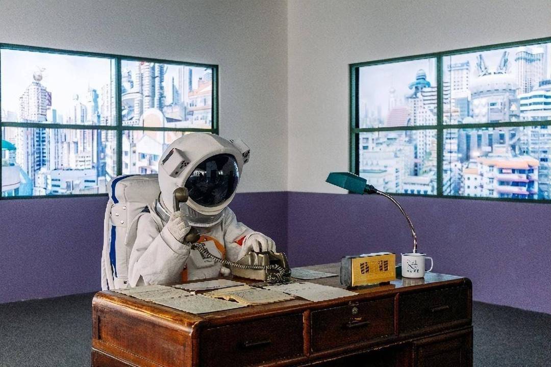 展览现场之一角——以上世纪90年代《科幻世界》编辑部为创作背景的“银河编辑部”