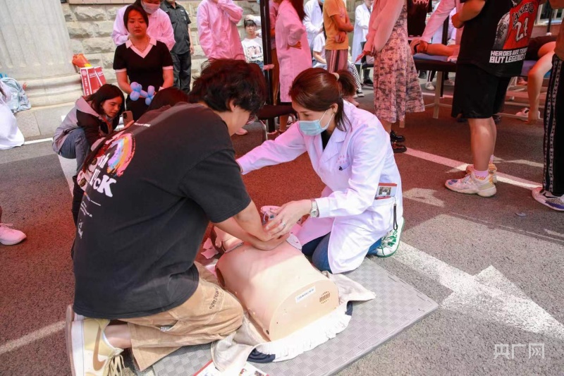 专家指导市民推拿手法(央广网发长春中医药大学供图)