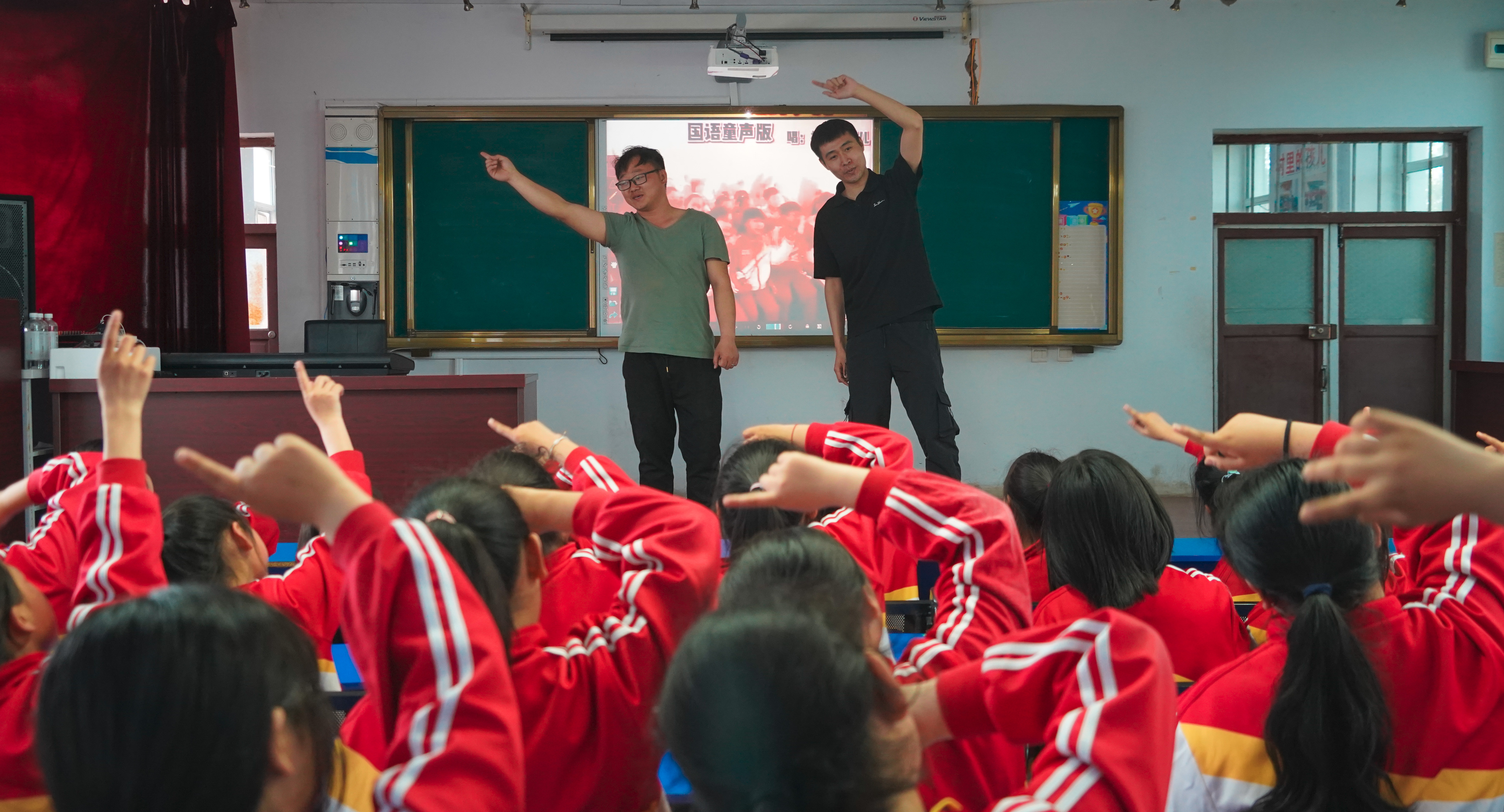 李平、张雨是学校里的两位“90后”音乐老师,他们分别在2016年和2018年以特岗教师的身份加入任民镇中心小学。对音乐和孩子们的喜爱让他们“一拍即合”。2019年,两位老师在教学中发现有的孩子声音天赋很好,不学习音乐有点可惜,就开始单独培训他们。
