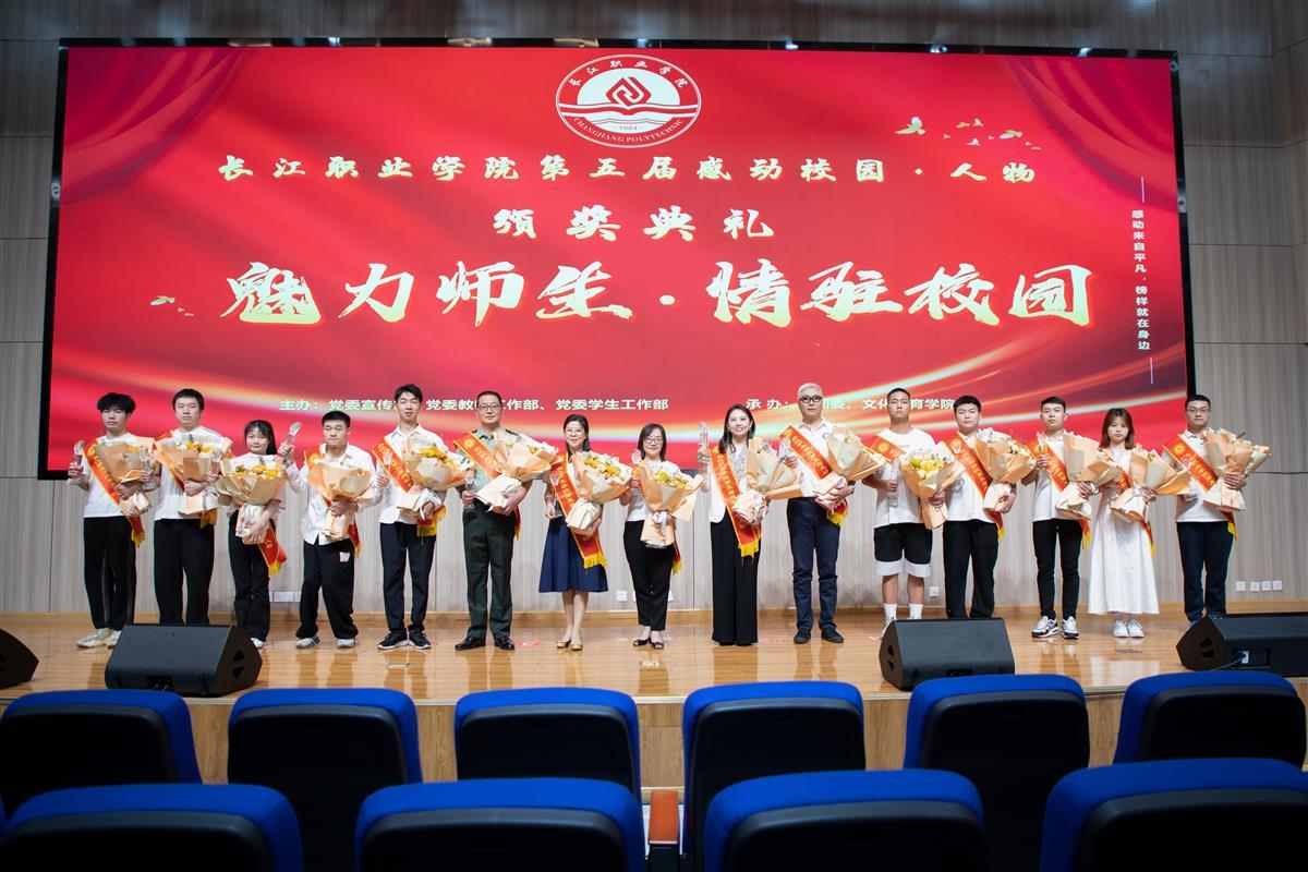 6月2日,在长江职业学院武汉新城校区举行的第五届感动校园人物颁奖典礼,宛如一场涤荡心灵的感动之旅。伴随着响起的掌声、泪水沾湿的眼角,十五位魅力师生依次走上舞台,接受属于他们的鲜花和掌声。这十五名获奖师生分别是:张晓英、段晓春、李铭、魏萌、郑姝姝、朱云飞、吴才富、韦惠琳、赵子昂、关国梁、郭尔博、吴怡晨、刘金坤、陈东、黄志成。他们当中,有在困厄时乐观应对,勤奋学习书写非凡的学生;也有心中装满情怀,燃烧自己温暖他人的老师……
