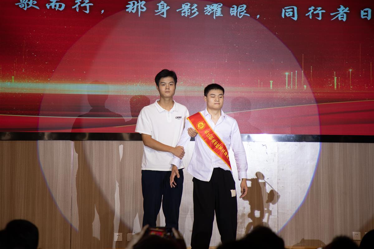 颁奖典礼现场,三个笔挺的身影令人瞩目。他们是党委武装部(保卫处)段晓春老师、 文化教育学院学生刘金坤和城市建设学院学生朱云飞,三人均是退伍军人,却依然退役不褪色,冲锋在前,守护校园守护人民。