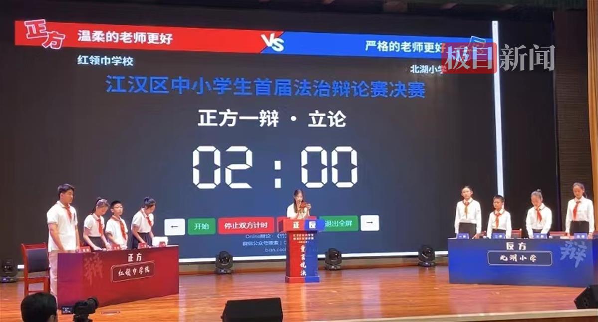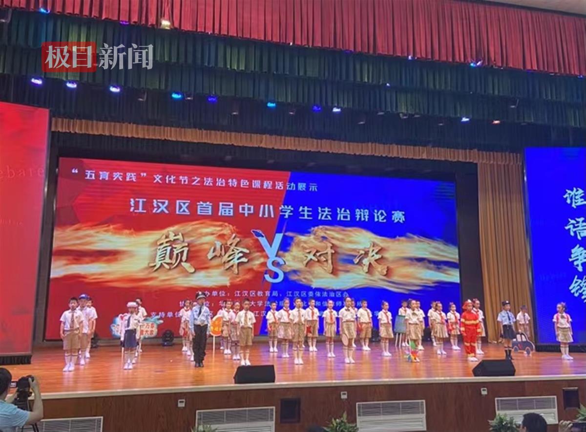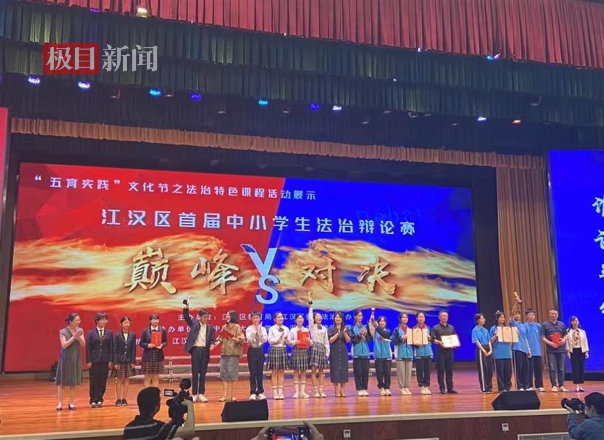 6月2日,武汉市江汉区教育局举行首届中小学生法治辩论赛决赛。小学组和初中组的四组选手围绕辩题,结合法治知识展开激烈辩论。