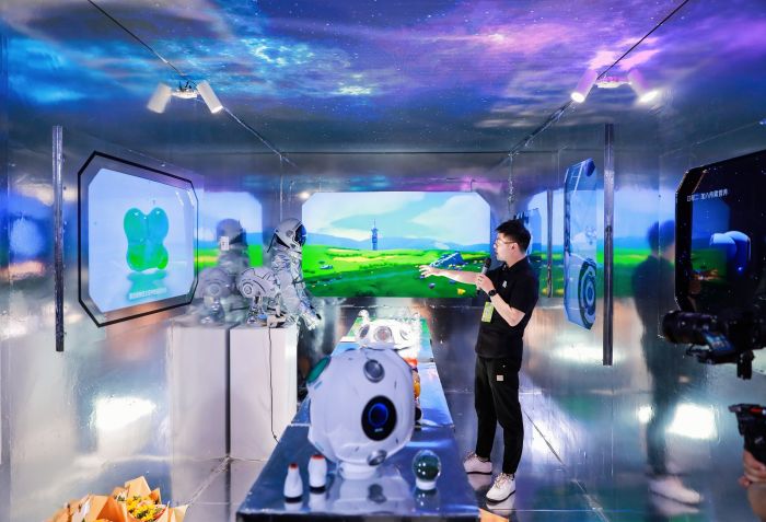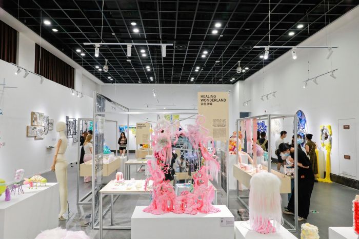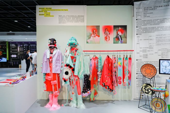 设计艺术学院视觉传达设计系作品展示了毕业生在探索传统与创新的边界、人文与科技的融合,解决社会问题和拓展艺术表达方面独特的可能性。染织与服装设计系学生聚焦可持续材料设计、智慧纺织品设计、数字纺织品设计、疗愈设计、东方设计等多个研究领域。工业设计系与产业进行深度联合,共同打造面向智能时代的“〇一工场”,以生活美学、数字交互、智能制造、智慧出行为四大板块描绘未来的各种场景,并从今年启动“10×10×10”新青年设计共创计划,邀约创新企业、创新导师与创新青年,以毕业设计为载体,开展联合设计创新。综合设计系通过建立跨学科界限的联系,试图在多元环境中解释现实世界现象与阐释设计主张。