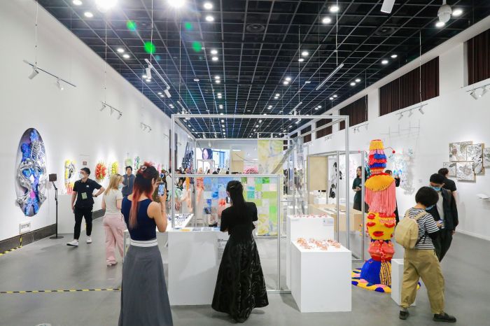 青艺周同时还是一个毕业生展示自己的舞台,中国美术学院在毕业展期间开展“邀企引展促就业,精准推介觅人才”活动,为学生就业搭建桥梁和平台,用好毕业展超大的线上线下流量带动毕业生就业创业。展览期间,学校在浙江展览馆毗邻空间增开为期一周的“南山艺市”,展销创意设计、非遗传承、文化传播产品,打造移动的生活美学馆,吸引了70余家学生创业摊主报名,将文化、文艺与文创相结合。作为今年中国美术学院毕业展览的特别策划,中国美术学院联合花西子共同举办“东方园林”主题大赛创作展,并于5月31日在花西子西湖隐园旗舰店正式开展。这不仅是国美毕业展的一次跨界尝试,更是产学研融合的一次探索,当艺术探索与东方园林相遇,打造了一场浓郁的东方文化艺术盛宴。同时,花西子x中国美术学院国潮艺术研究中心也在当日挂牌成立。