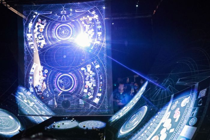 跨媒体艺术学院以“世界巨灵”为主题,共展出作品200余件。“大脑花园”与“世界巨灵”,作为互相呼应关照的概念,展示了我们与世界的关系所发生的深远变化,亦启发青年创作者延展心智,对自我灵魂和外在世界展开奇思冥想。展览分为“涌流之寂”“人工艺能”“过河入林”“造物大陆”“动机”“入声”等展览版块,将跨越现场表演、影像装置、动力装置、微缩模型、纪念碑装置等不同媒介品类,囊括多元主题,展现跨媒体艺术各种表现手法的有力集合。