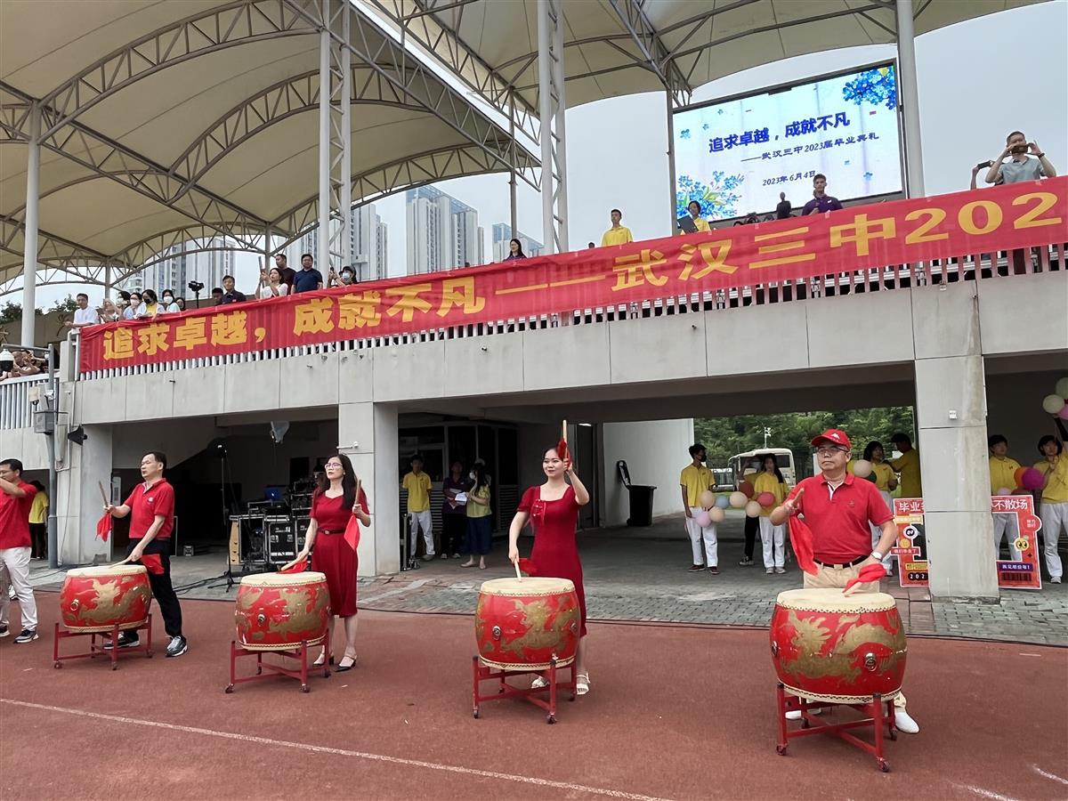 高三班主任倾情敲响的祝福鼓点、父母用心唱起的《亲亲我的宝贝》、写满祝福被投掷到高三学生身上的纸飞机、放飞象征希望的氢气球……6月4日,武汉市第三中学2023届毕业典礼,在该校操场举行。该校500余名高三学生、家长和学弟学妹们,一同见证了青春洋溢的时刻。