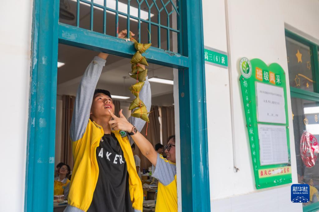 6月5日,江西省永新县永新中学学生挂起粽子,寓意在高考中“高中”。新华社发(刘平华摄)