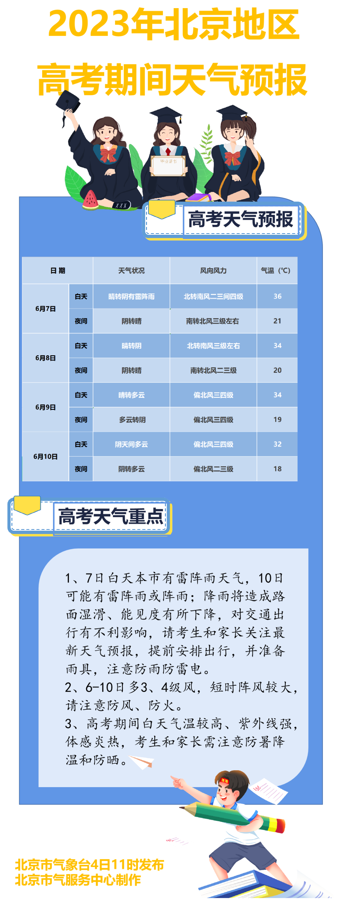 考生出门前要再次检查准考证、身份证、铅笔、钢笔、签字笔、橡皮、尺子、饮用水等考试必需品,避免遗漏影响考试。当前正值汛期,请考生和家长朋友关注天气变化,遇降雨情况适时提前出发,以免因天气原因耽误考试。