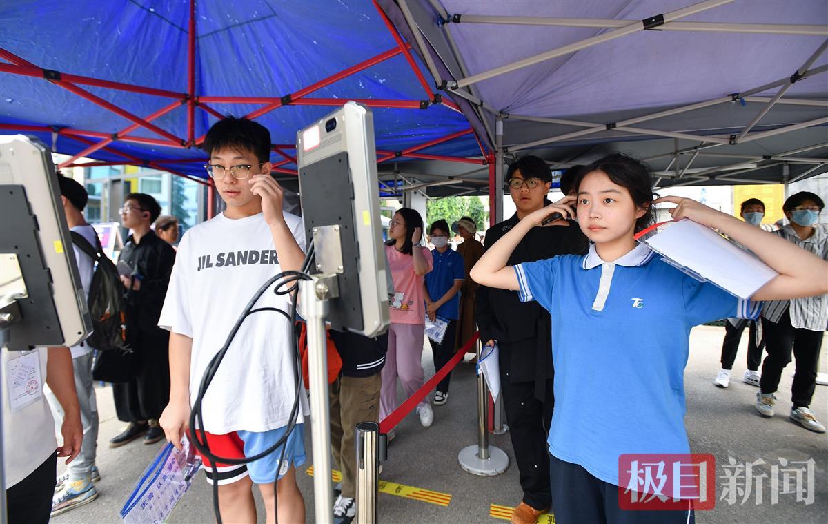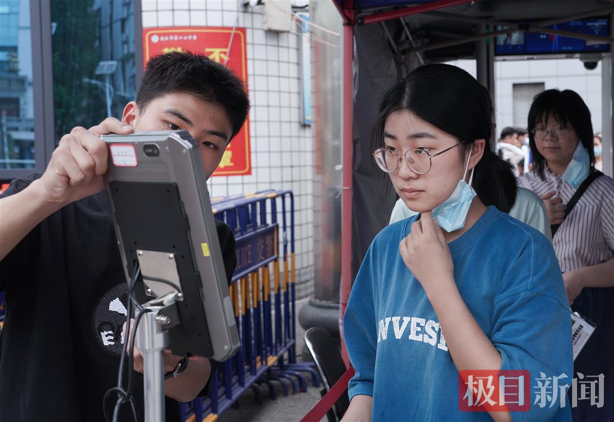 此外,安检门通道的末端,安装有人脸识别等身份核验系统,考生在工作人员的引导下,完成代表身份确认的第二道安检。进入考点后,考场门口的监考员会在视频监控下利用金属探测仪对考生再次进行禁带物品检查。