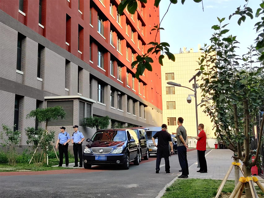 6月7日6点前,高考试卷运输车辆陆续到达北京市海淀区教育招生和考试中心院内。本文图片均为澎湃新闻记者程婷图