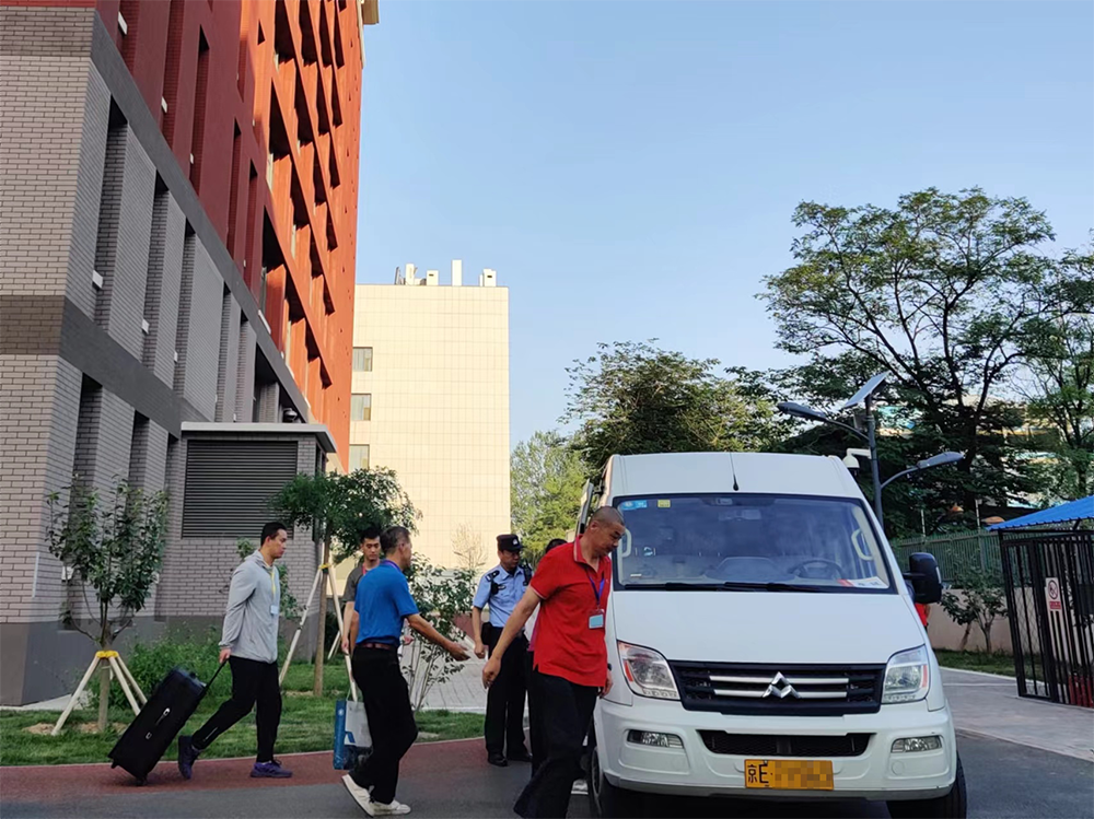6点前后,各个考点的运输车辆陆续到达考试中心院内,一箱箱的高考试卷被装上车,运往海淀区的各个考点校。每辆运送试卷的车辆中都有民警随车押运,全程监管,确保试卷安全。