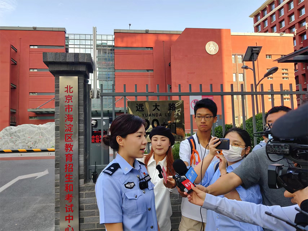 在北京市海淀区教育招生和考试中心现场,北京市公安局海淀分局高校内保支队副支队长徐子文介绍,今年北京市海淀区有14000余名考生,考生数量约占北京全市的四分之一,居北京全市之首。为确保考试安全,实现“如期高考、应考尽考、安全考试”,北京海淀公安分局会同多部门联勤联动,多措并举全力护航高考。