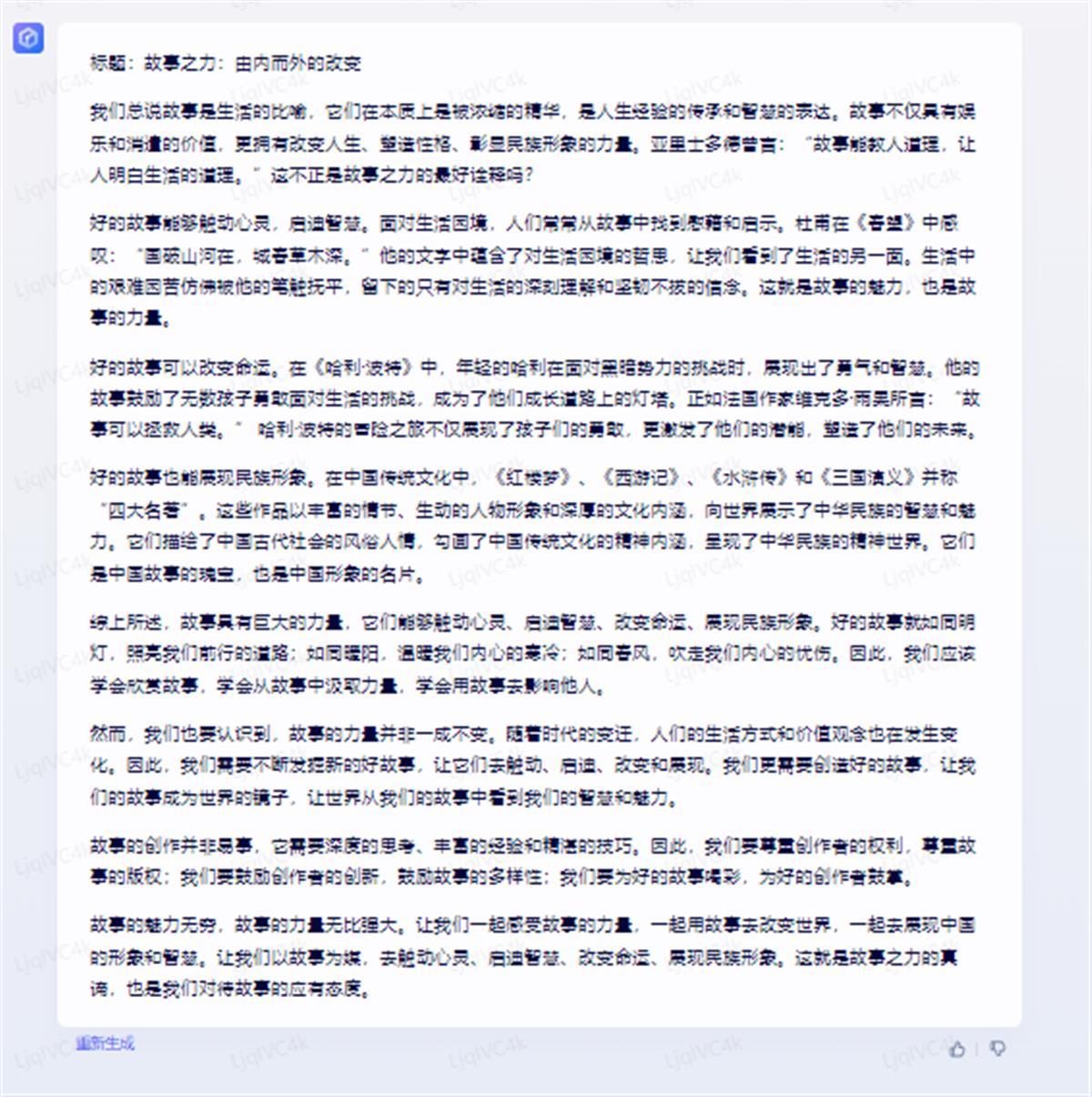 “写湖北考题的三篇我都看了,可以说质量都很高,但都绝对拿不了满分。”樊星教授表示,人工智能的“作品”思路清晰,层次分明,论据充分,可以说几乎无懈可击。但他同时表示,无论是ChatGPT还是讯飞星火、文心一言,写出来的作文都有一个最大的问题——缺乏个性,看不到才气。