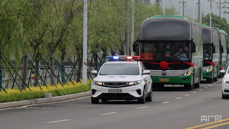 “985”警车为考生开道(央广网发乐清市委宣传部供图)