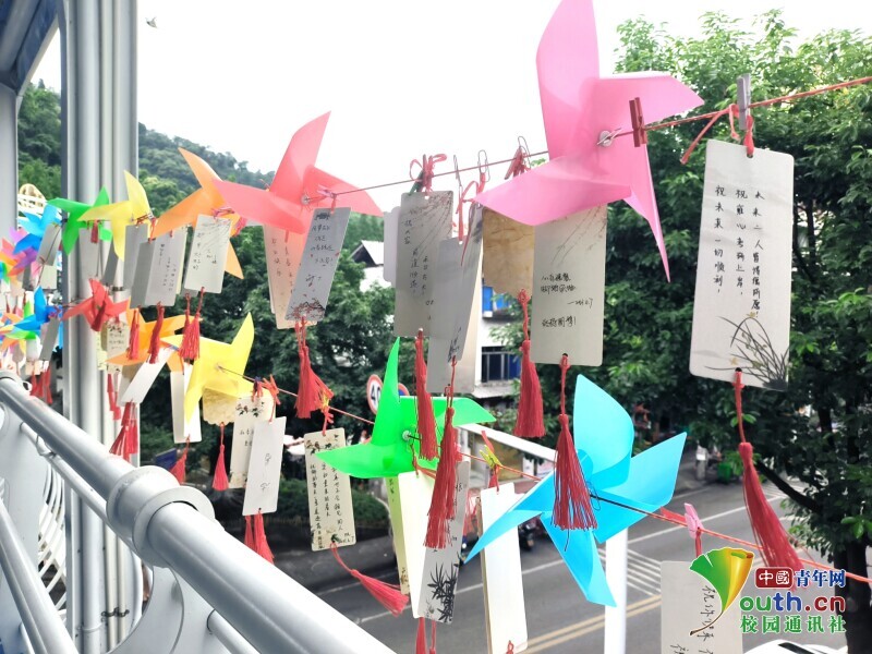 图为天桥上悬挂着的风车和书签。中国青年网通讯员苏梦婕摄