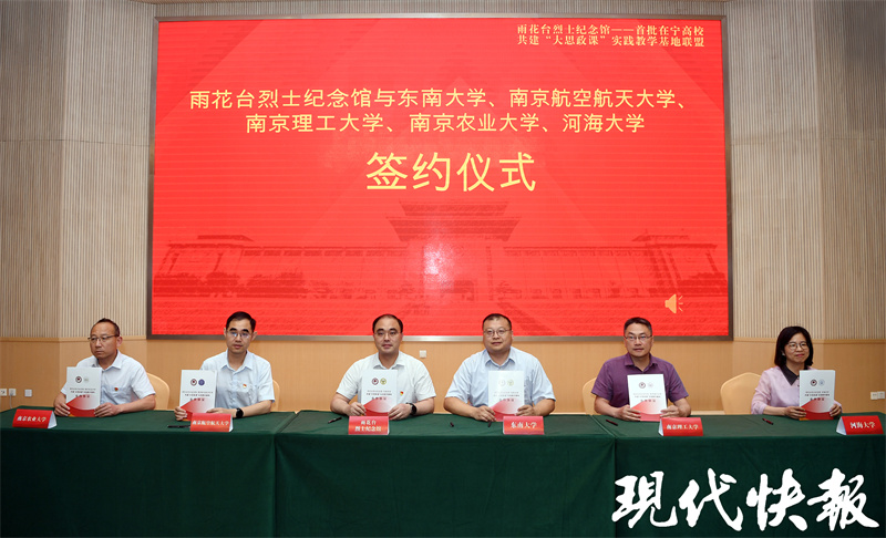 现代快报讯(记者刘静妍/文施向辉/摄)6月11日,雨花台烈士纪念馆——首批在宁高校共建“大思政课”实践教学基地联盟成立仪式在雨花台烈士纪念馆举行。