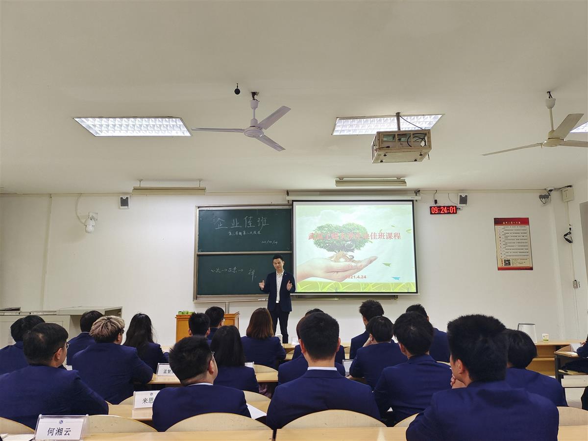 据悉,“企业佳”班由助学计划发起者徐进担任班主任,武汉工程大学学工部部长吕容涛担任执行班主任,每月由学生自主竞选轮值班长,负责执行相关班级计划。“企业佳”班已形成相对完善的选拔章程和激励管理制度,每月进行一次集中授课及活动。授课主要由班主任徐进开展专题讲座,不定期邀请各行各业的企业家以及从“企业佳”班毕业的优秀学长学姐做分享交流。授课内容“包罗万象”,从创业就业、企业管理、社会认知、思维格局等重要命题,到表达沟通、待人接物、价值理念、人生定律等品格塑造,旨在提升学生的综合素质和学生自我成长的内驱力。