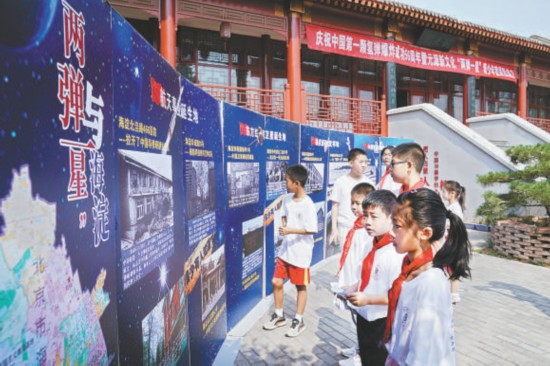 参加活动的青少年观看“两弹一星”与海淀主题展。本报记者王海欣摄
