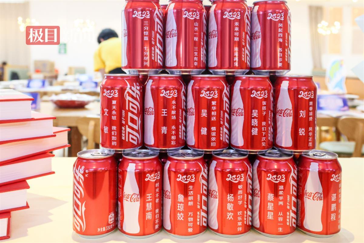 当天17时30分,师生们按约定时间准时到场,餐厅窗明几净,陈设简洁而温馨。学校贴心地为大家定制了罐身印有姓名的毕业专属纪念可乐。