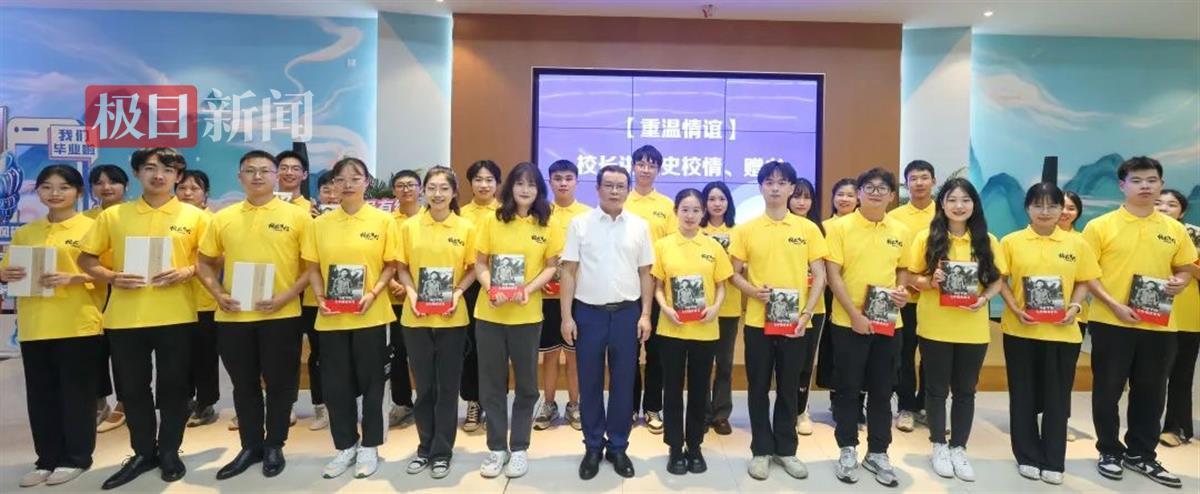 校长郑军为毕业生代表赠送《习近平的七年知青岁月》书籍,希望同学们从书中汲取精神力量,敢于担当、勇于拼搏,在不懈奋斗中实现自己的人生价值。