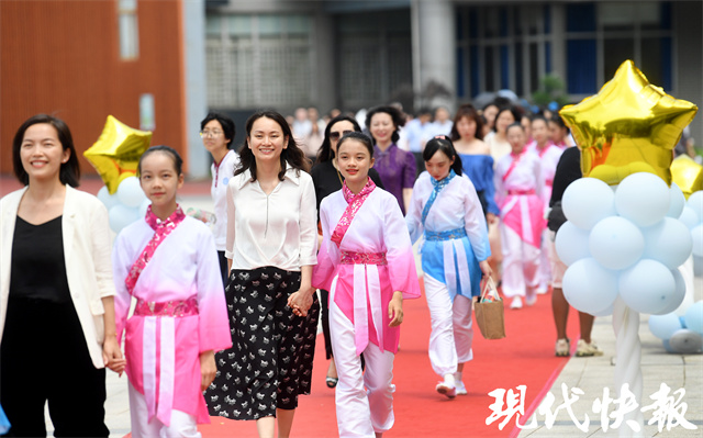 金中河西分校校长穆耕森深情祝福孩子们:回首六年前,你们背着小书包蹦蹦跳跳,来到美丽的金陵中学河西分校;六年来,你们参加了许许多多,诸如“七岁入学仪式”“小小精灵穿越南京”十岁成长礼、精灵秀、“七色光”艺术节、“阳光娃”运动会、周六俱乐部等丰富多彩的活动。你们一天天长大,通过六年的努力,知识能力素养全面发展。我要祝贺同学们,也要感谢各位老师和家长的辛勤付出。