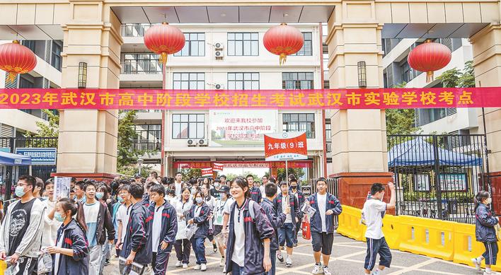 6月20日,2023年武汉中考首日顺利结束。当天进行了语文和数学两个科目的考试,极目新闻记者在考试结束后采访了部分考生,他们认为,今年中考的作文不太好写,而数学整体难度适中。