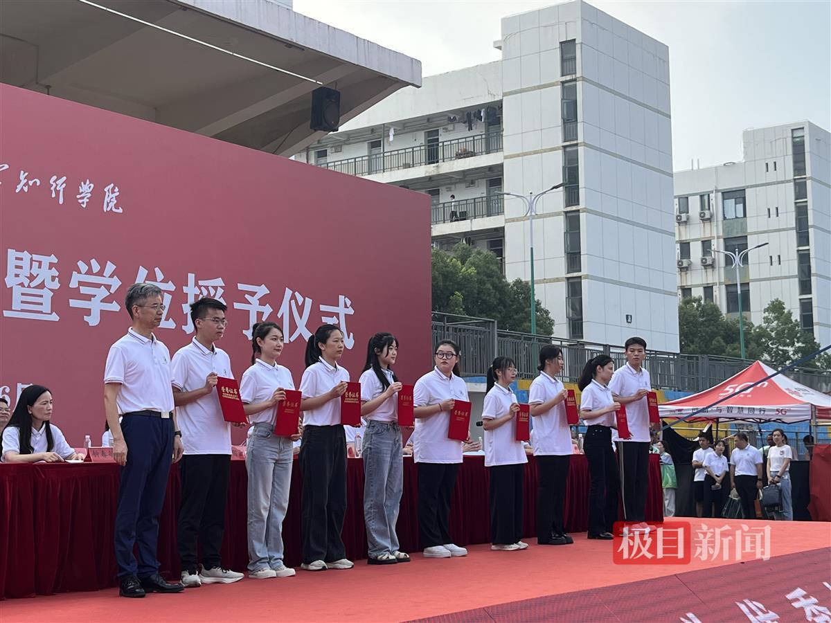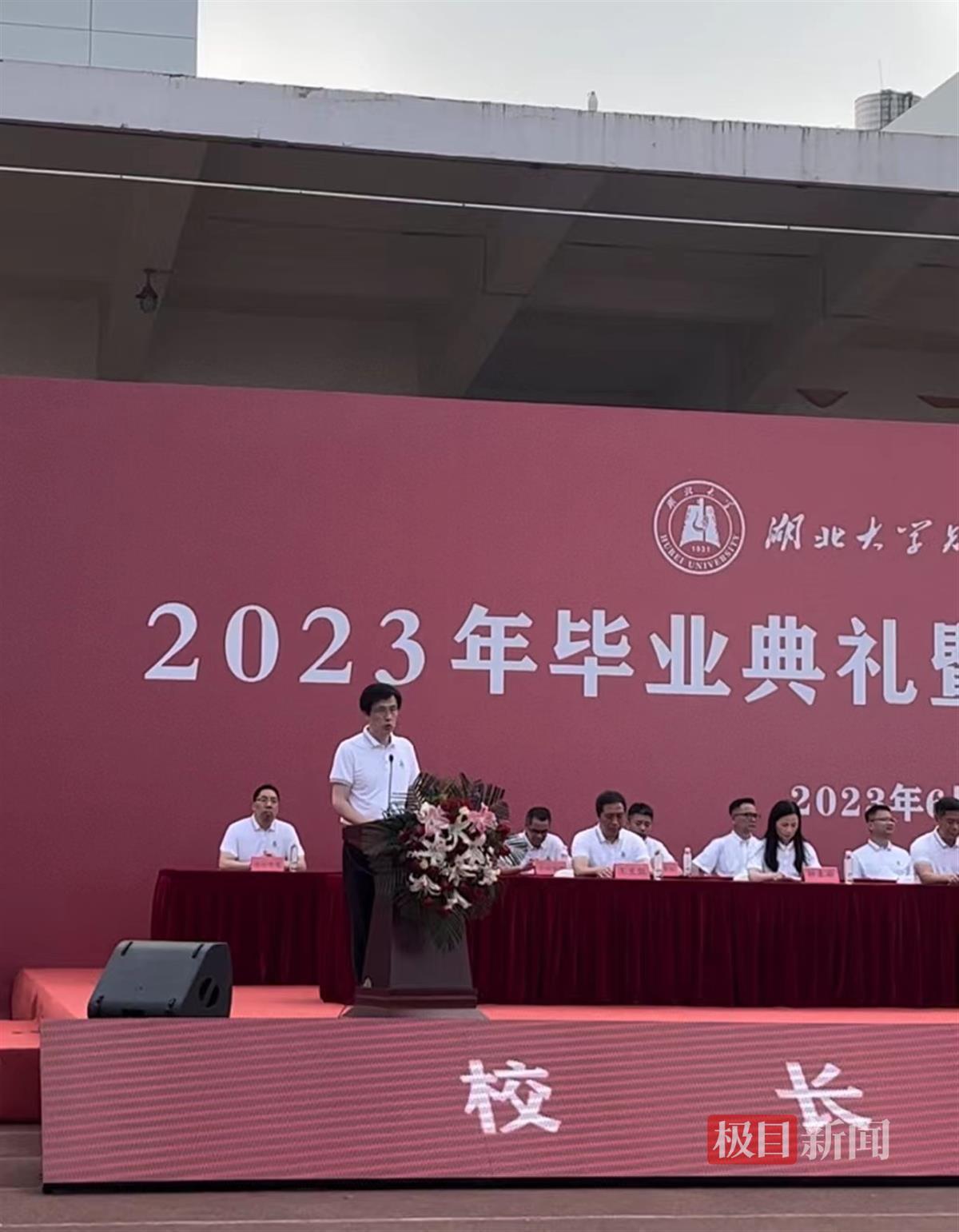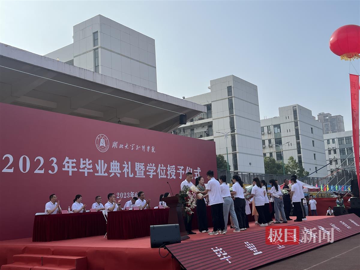 毕业典礼上,湖北大学知行学院党委书记彭德忠为优秀毕业生代表颁奖。校长高连顺致辞,“知行永远是你们的精神家园,欢迎你们常回家看看!”他表示,希望毕业生在学习求知和工作生活中奋发向上,与时代同行中,恪守善良、自律自强,立志做有理想、敢担当、能吃苦肯奋斗的新时代好青年,让青春在全面建设社会主义现代化国家的火热实践中绽放绚丽之花。