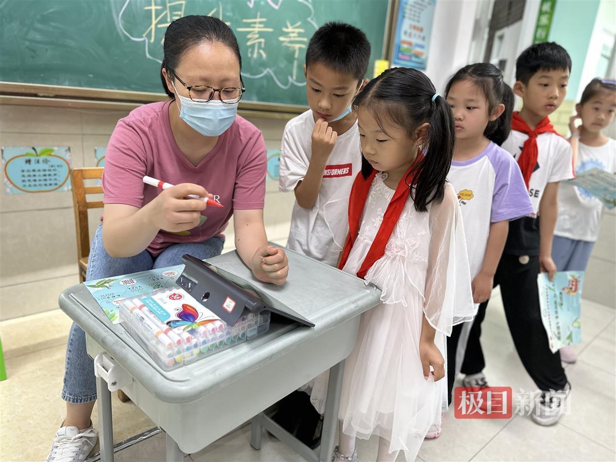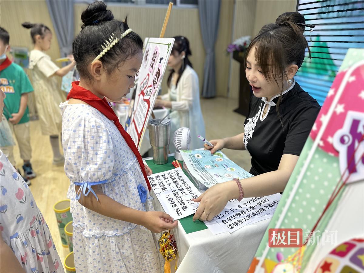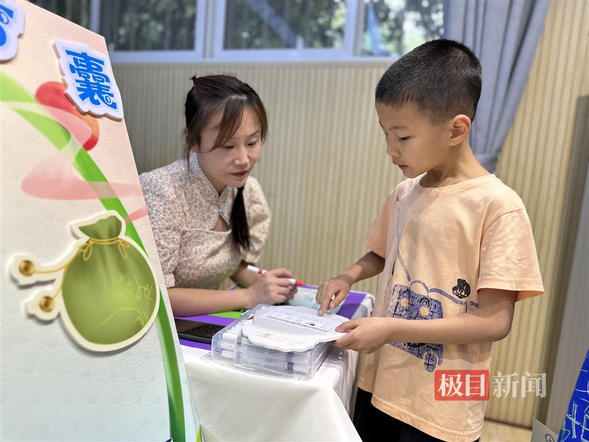 极目新闻记者注意到,五个挑战环节不仅寓教于乐,还充满了端午节的节日气氛。学生们一边参与惊喜挑战,从图形中选择轴对称图形,还在数学超市里抽取“我‘艾’香囊”,估算买吹风机和微波炉的价格。