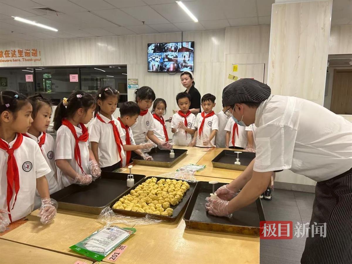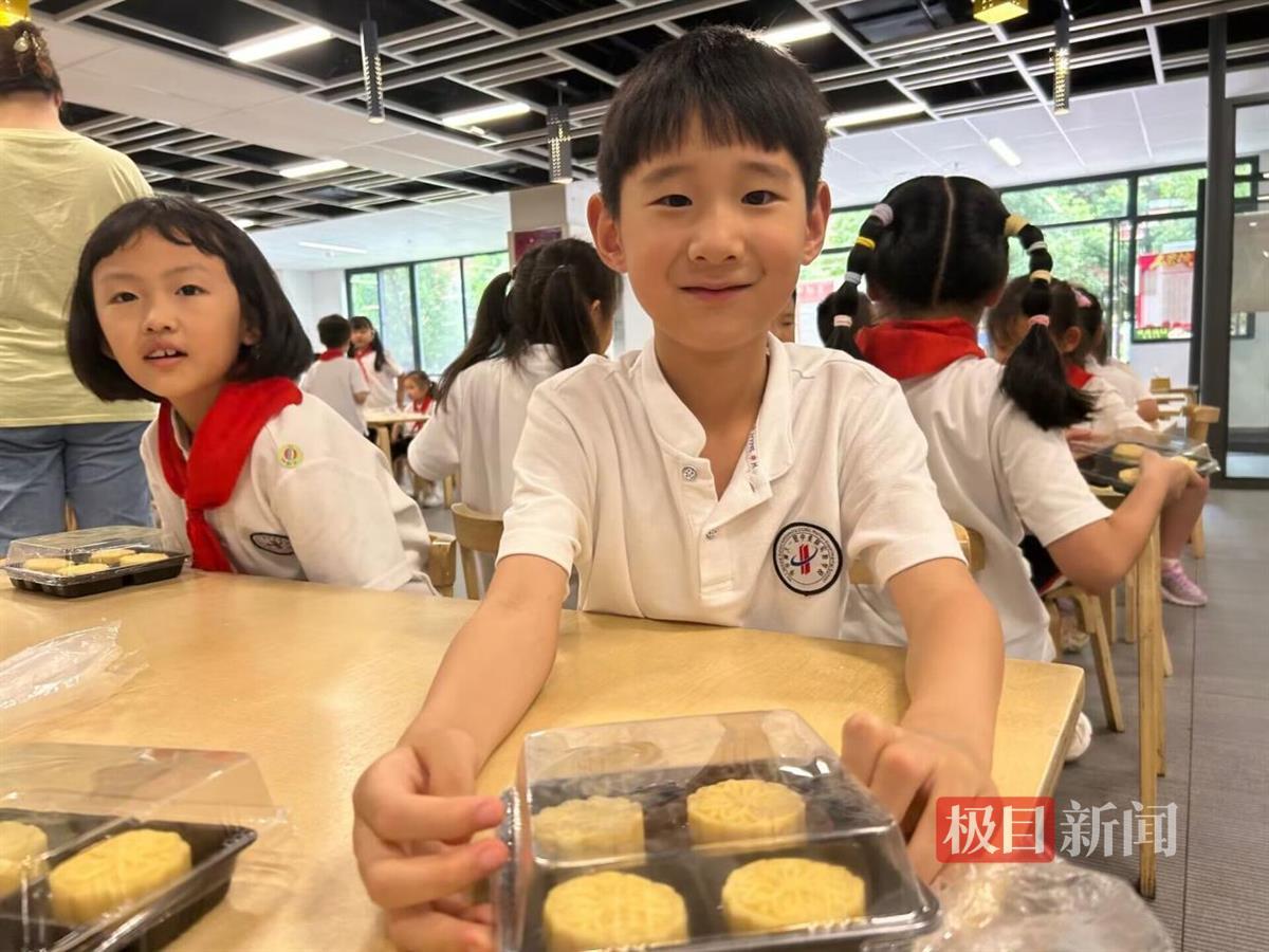 小学部的孩子们在食堂阿姨的指导下,用力团呀团,搓呀搓,模具按压、成型,最后轻轻地脱模。不一会儿,一块块胖墩墩、软乎乎的绿豆糕在孩子们的齐心协力下成功“出炉”,咬一口,甜在嘴里,乐在心里。106班的段星辰同学手捧着刚刚做好的一盒绿豆糕,舍不得吃,“我要带回家送给爸爸妈妈和爷爷奶奶吃,我只吃了一点边角料……”在体验传统文化的同时,孩子们也在接受劳动教育,培养感恩之心。