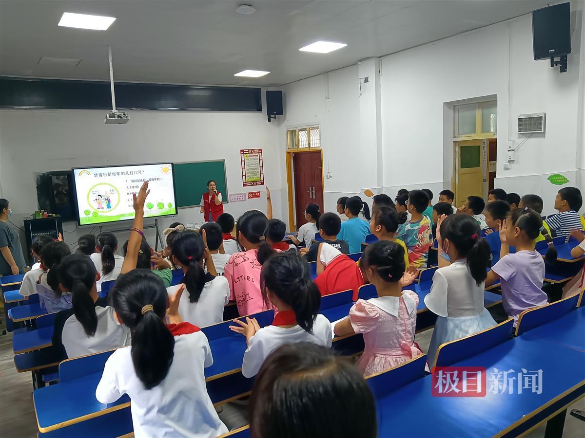活动现场,禁毒社工首先让学生们观看仿真毒品,并从“毒品介绍、什么是吸毒、毒品的危害、如何防止吸毒”四个方面进行讲解,并通过现场提问的方式加深学生们对禁毒知识的印象,学生们十分踊跃举手回答问题,禁毒社工还会给积极互动的学生发放小奖品,给小学生们上了一堂生动有趣的禁毒知识课。
