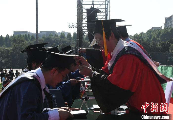 图为重庆医科大学举行2023届学生毕业典礼暨学位授位仪式。 周毅摄