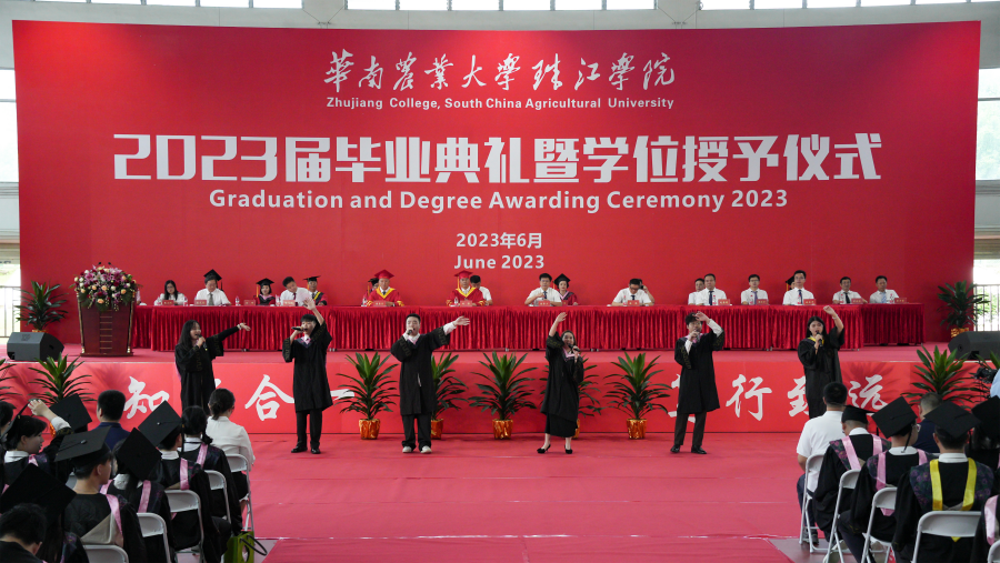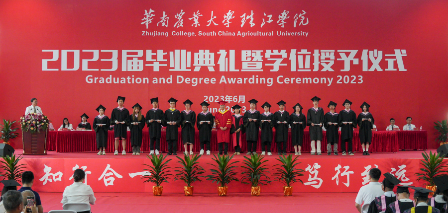 央广网北京6月27日消息6月25日上午,华南农业大学珠江学院2023届毕业典礼暨学位授予仪式在体育馆隆重举行。华南农业大学钟强副校长、华珠校领导、中层干部、学位评定委员会委员、各二级学院党总支副书记、办公室主任,辅导员代表、教师代表、家长代表、学生代表参加本次典礼。