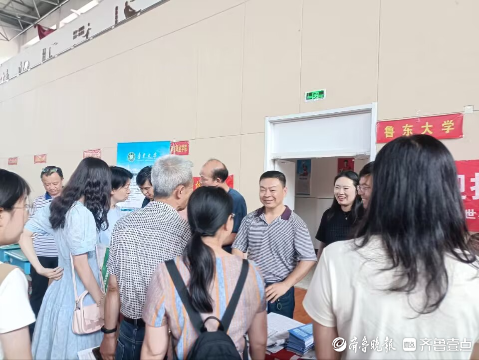 高招会现场,鲁东大学展位前围满了前来咨询的考生和家长(记者李楠楠摄)