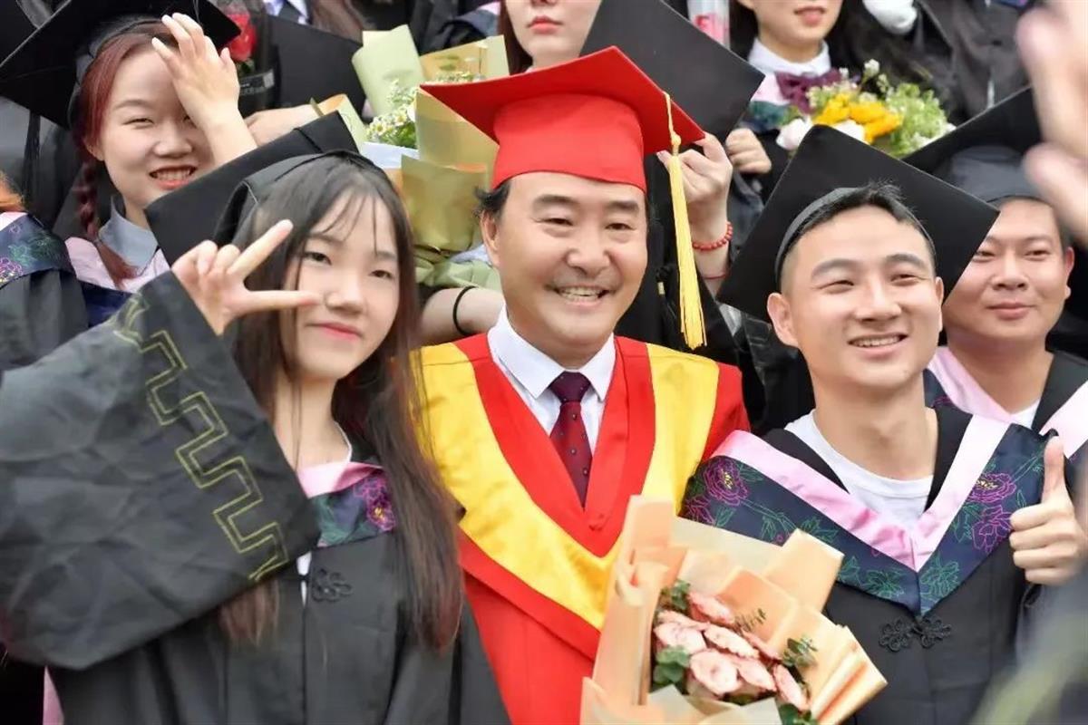 董事长、校长汪彬教授与毕业生合影
