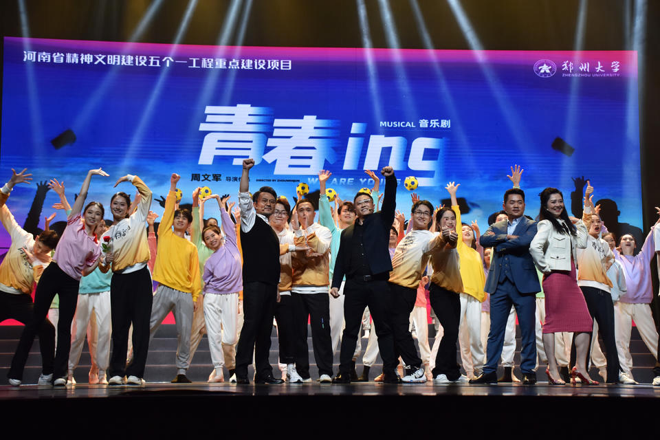 6月28日至29日,由郑州大学党委宣传部指导、郑州大学河南音乐学院和璨澜星文化发展有限公司共同打造创作的原创音乐剧《青春ing》在郑州大剧院首演。郑州大学党委副书记吴宏阳,学术副校长董子钢、赵中伟、胡少伟,校党委常委、总会计师徐东升,校党委常委、宣传部部长厉励,校党委常委、统战部部长王莉华和800多名师生一同观看了演出。