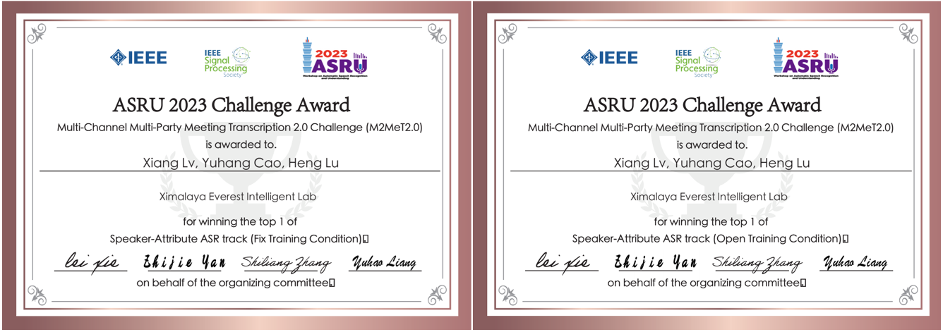 近日,2023年国际顶级语音会议ASRU(IEEEAutomaticSpeechRecognitionandUnderstanding,自动语音识别与理解)的多通道多方会议转录挑战赛(M2MeT2.0)圆满结束,喜马拉雅珠峰实验室取得了卓越成绩,荣获冠军殊荣。