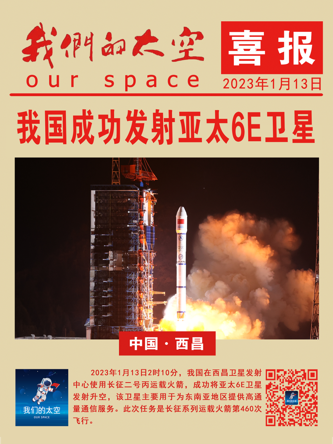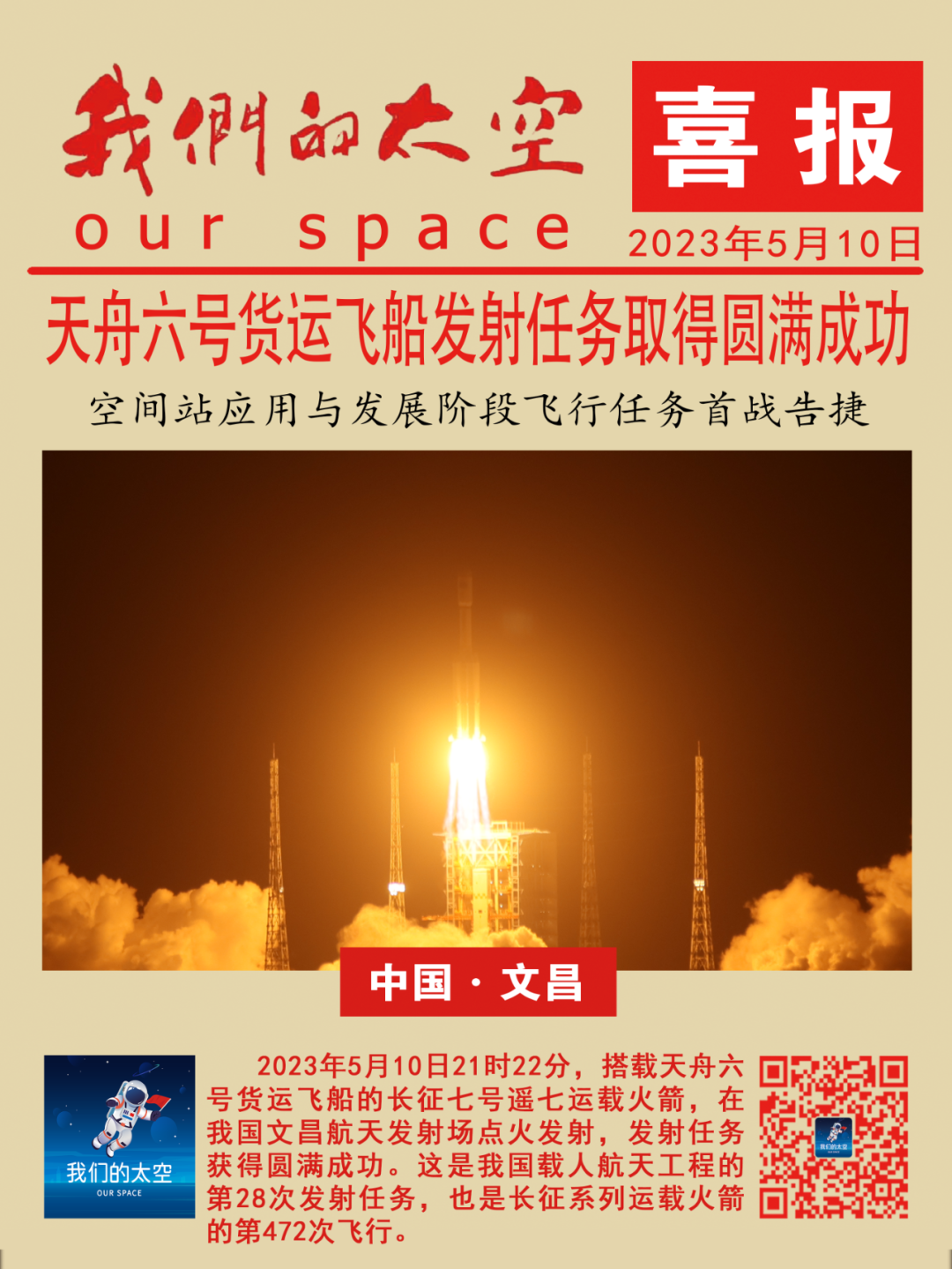 回顾今年上半年,中国航天成功实施了以天舟六号货运飞船、神舟十六号载人飞船、内地与澳门合作首颗科普卫星“澳门科学一号”以及若干颗卫星送入太空为代表的航天任务,并以一箭41星再次刷新了中国航天单发新纪录,有力推动了航天强国建设。星辰大海,征程漫漫,未来,中国航天必将走得更稳、更远!