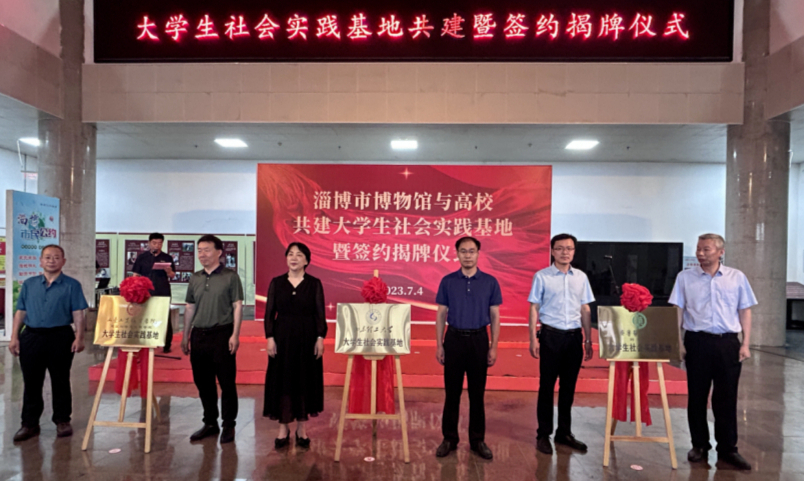 2023年暑期来临,正是研学实践好时节。7月4日,淄博市博物馆与山东理工大学、山东工业职业学院建筑与信息工程学院、齐鲁医药学院药学院举办共建大学生社会实践基地签约揭牌仪式,将在思政教育、文创设计、志愿服务等领域深化“馆校”合作,建立文化、教育资源共享机制,促进博物馆与高校事业高质量发展。