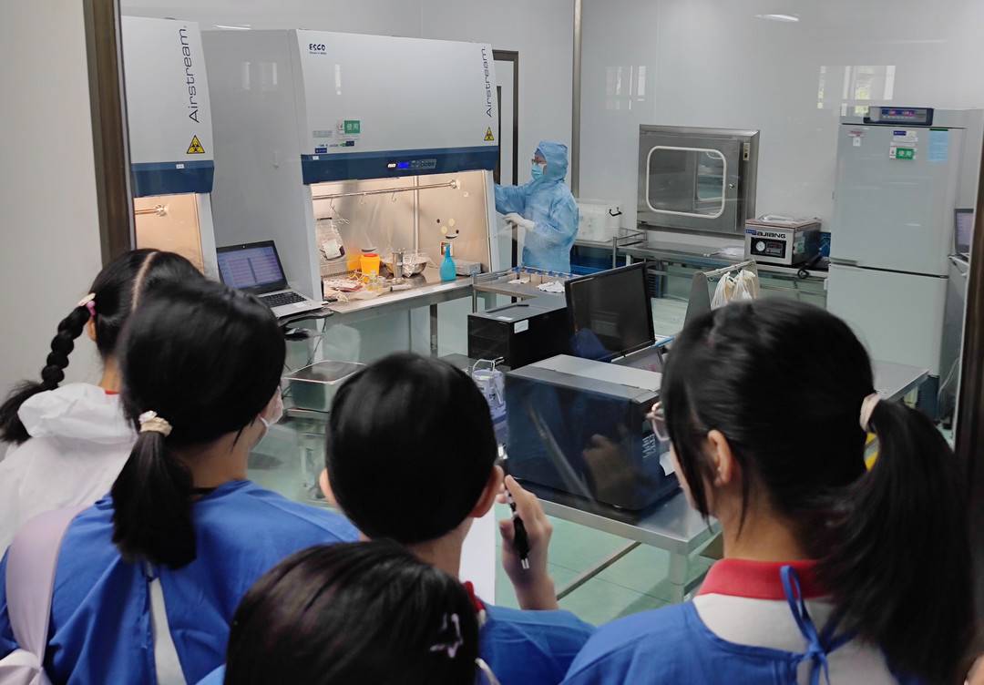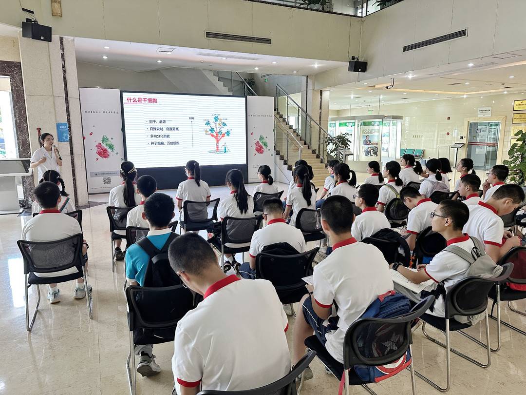 听讲座、参观实验室、观看液氮小实验、在生物安全柜里亲自动手培养细菌,7月5日上午10点左右,成都市泡桐树中学30余名师生来到四川新生命干细胞科普教育中心,开启“暑期职业体验研学”之旅。
