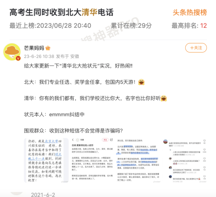 每年这个时候,总能在热搜上围观学霸是如何被北大清华疯抢的,两校大战堪比宫斗剧。#也是每年高考最有仪式感的事情之一#