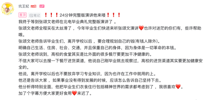没有空话套话,而是结合自己的心路历程,教他们毕业后怎么过日子,很温暖。