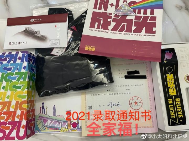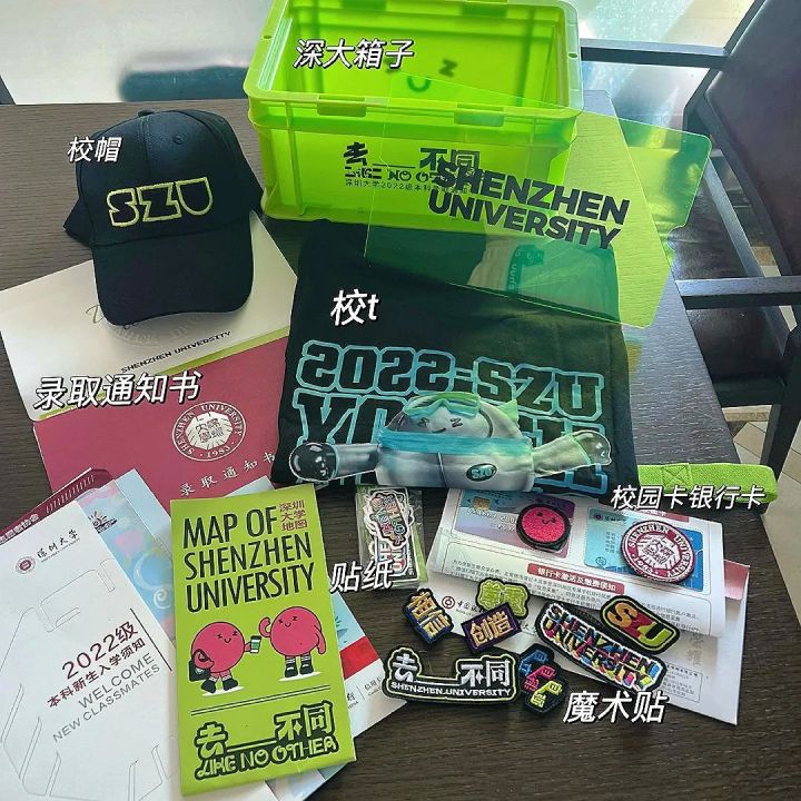 从2016起,深大创造了国内第一个盒装录取通知书,成了国内高校录取通知书形式的颠覆者,之后每年都是好大一盒。